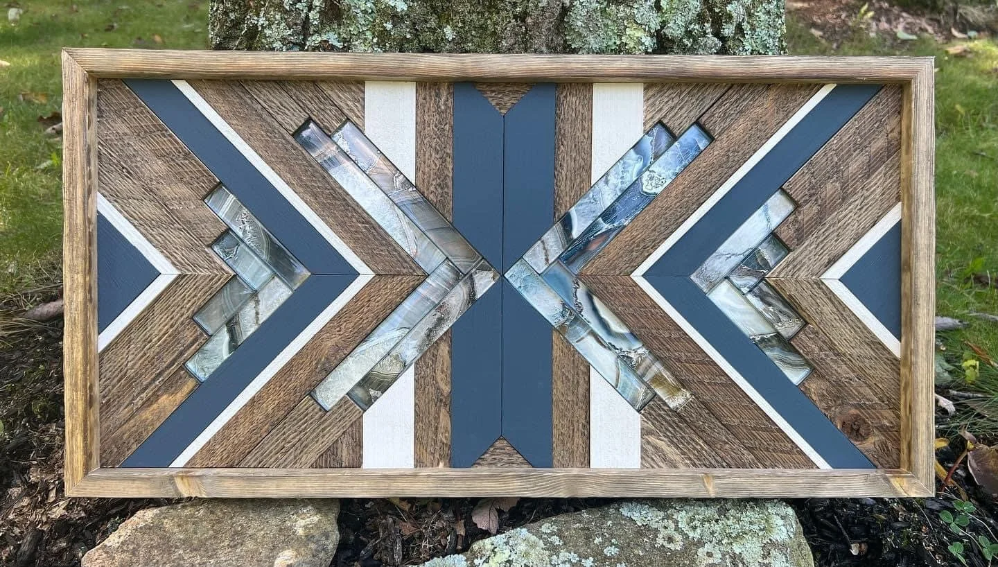 Wood art, wooden mountain pieces, wooden art trays, wooden flags, laser engraved pieces