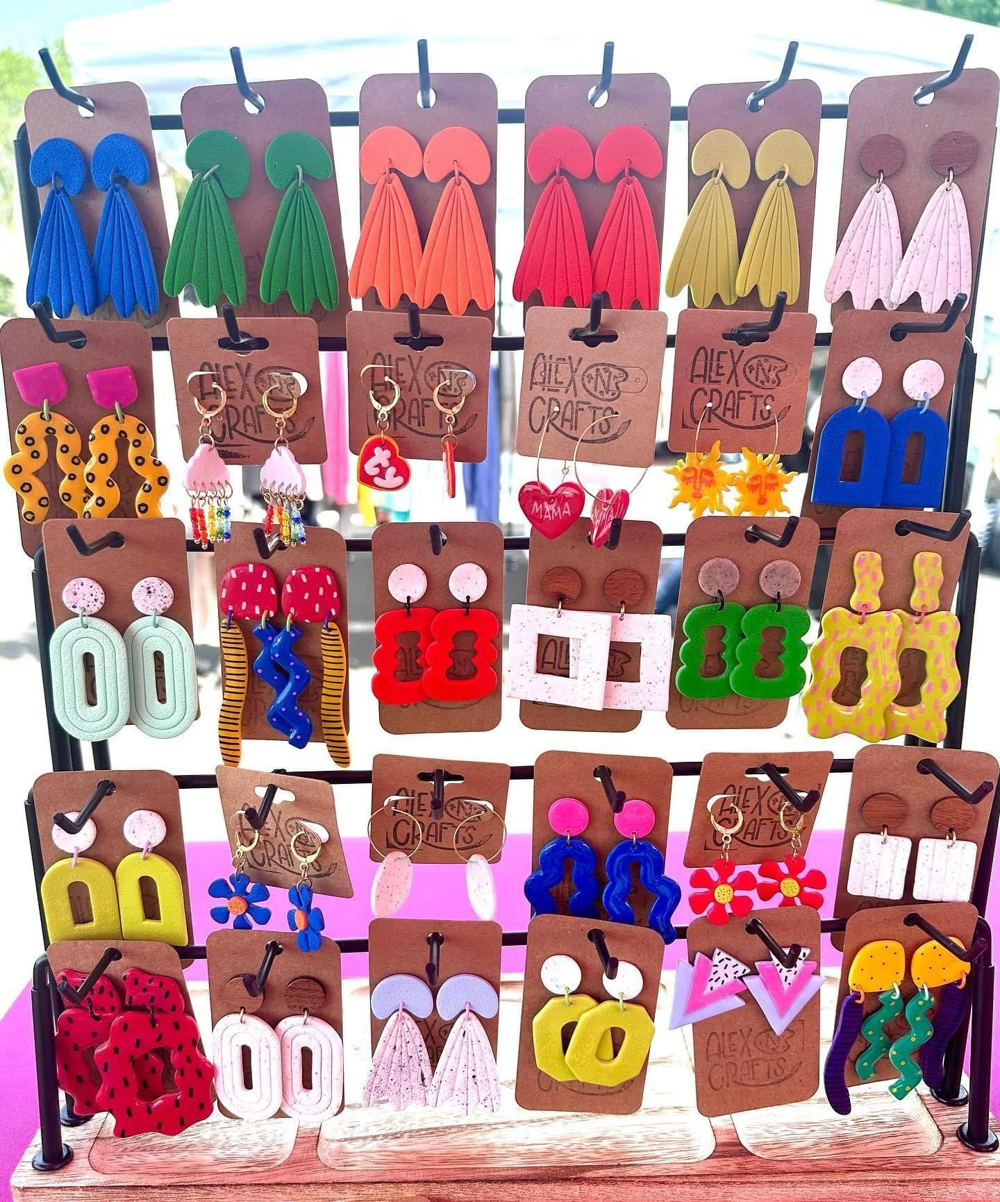 Bold Colors, messy textures, wildlife fun, uplifting words, and niche pop-culture references to bring back your inner child best describe Alex's work from illustrative prints, cards and jewelry pieces!