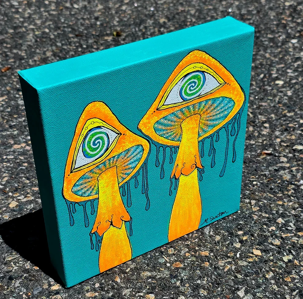 Fresh uncut mushrooms, tea, jerky, tincture, dried mushroom art